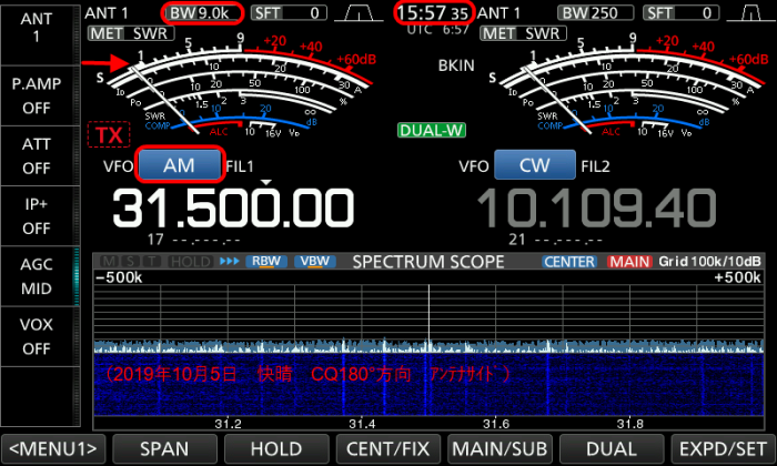 午後3時54分 CQアンテナ 270°方向(ビーム方向)⇒ノイズ信号「Sメータ 5」。
